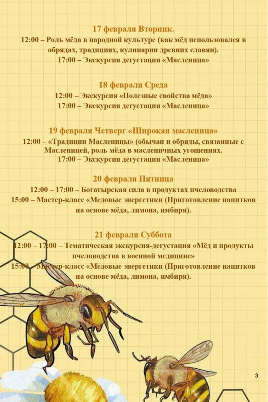 Готовимся к весне вместе! Вас ждут медовые истории, дегустации самого вкусного мёда к блинам и праздничная атмосфера истинного русского гостеприимства.